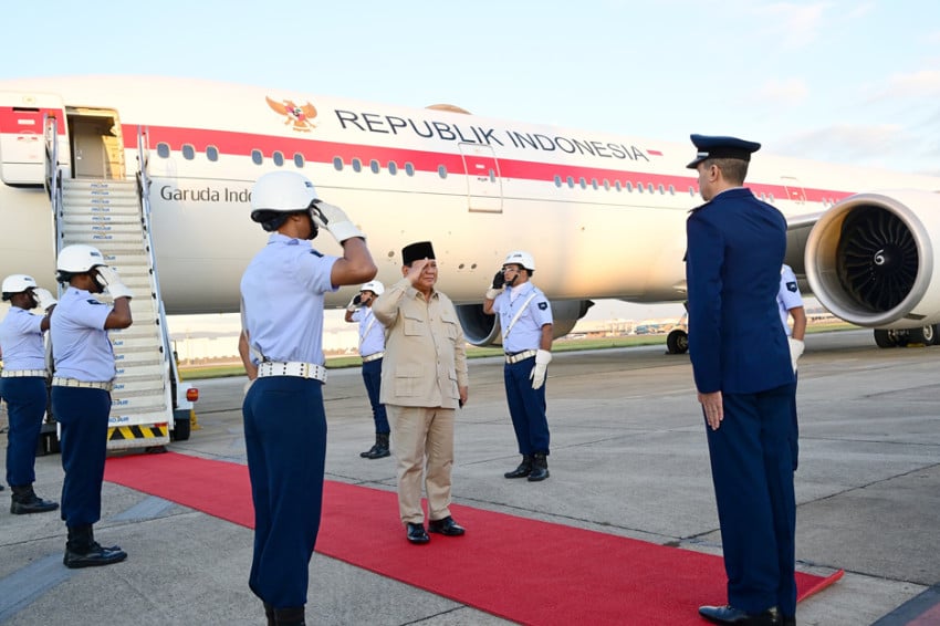 Pemimpin Negara Prabowo Subianto tiba Ke Rio de Janeiro, Brasil Sebagai melakukan kunjungan kenegaraan dan Berpartisipasi Di Konferensi Tingkat Tinggi (KTT) BRICS 2025. Foto: Biro Pers, Media, dan Informasi Sekretariat Pemimpin Negara