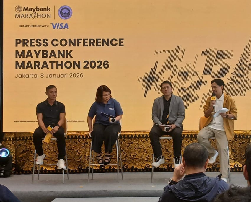 Konferensi pers Maybank Marathon 2026 Hingga Jakarta, Kamis (8/1/2026) Foto: SINDOnews/Susanto